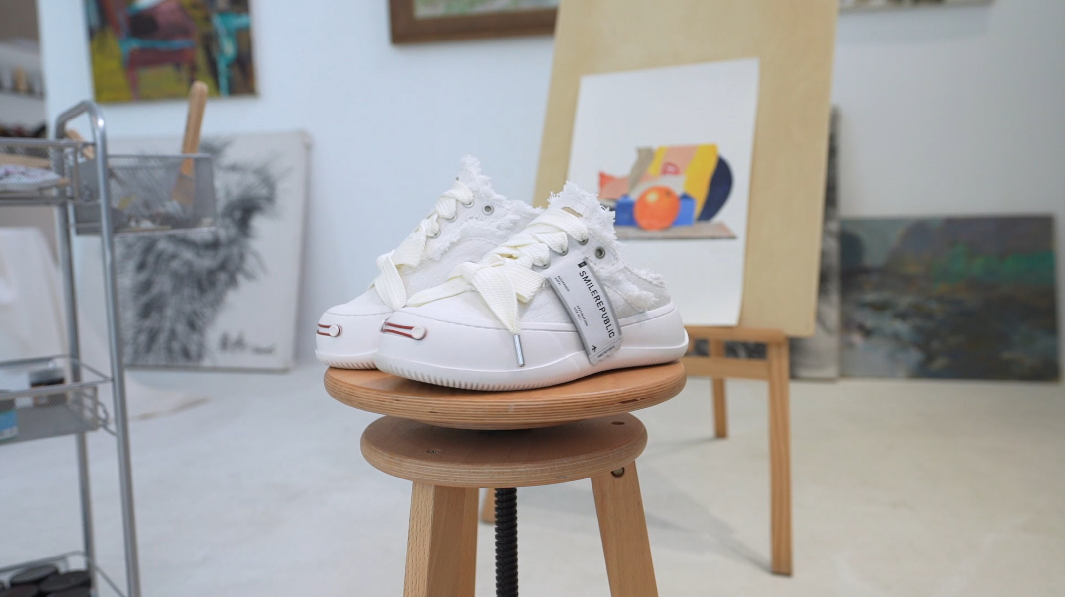 2.0 Smile Queen Off-White Tweed Leather Low Top Canvas Shoes